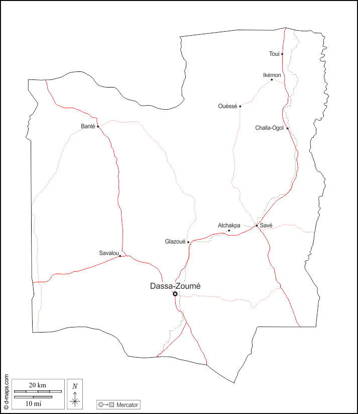 d-maps > Afrique > Bénin > Département des Collines > contours, principales villes, routes, noms, blanc