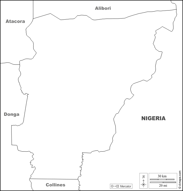 d-maps > Afrique > Bénin > Département de Borgou > frontières, noms, blanc