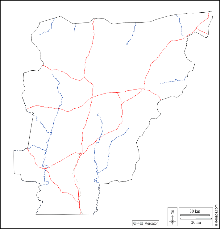 d-maps > Afrique > Bénin > Département de Borgou > contours, hydrographie, routes, blanc