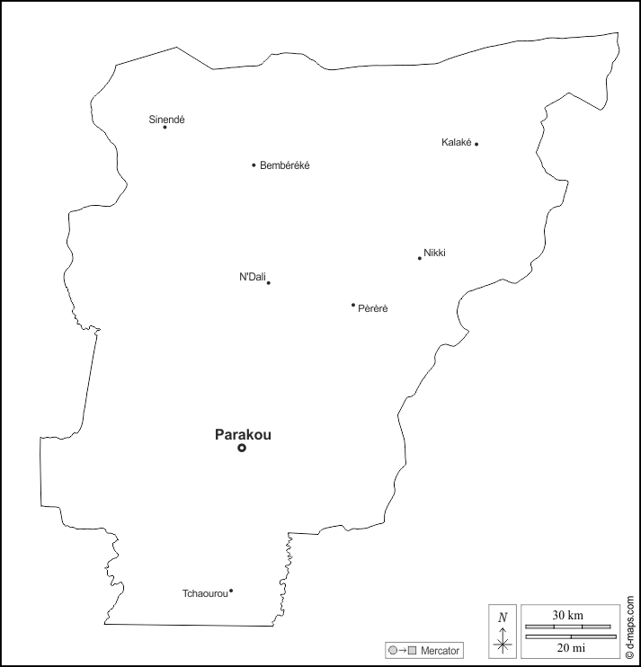 d-maps > Afrique > Bénin > Département de Borgou > contours, principales villes, noms, blanc