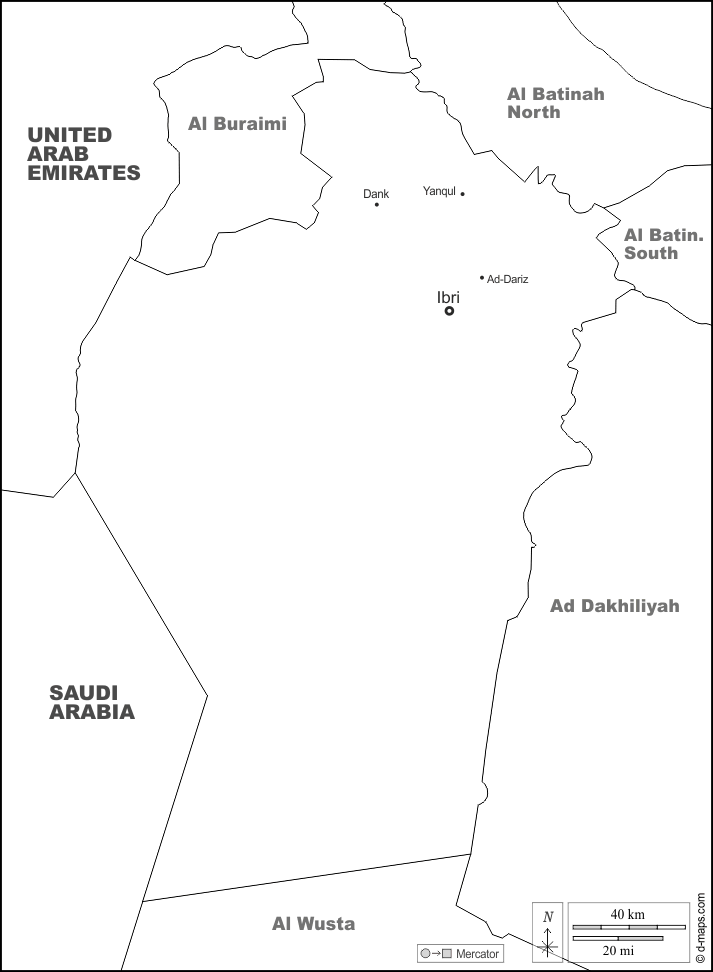d-maps > Oman > Gouvernorat d'Ad Dhahirah > frontières, principales villes, noms, blanc