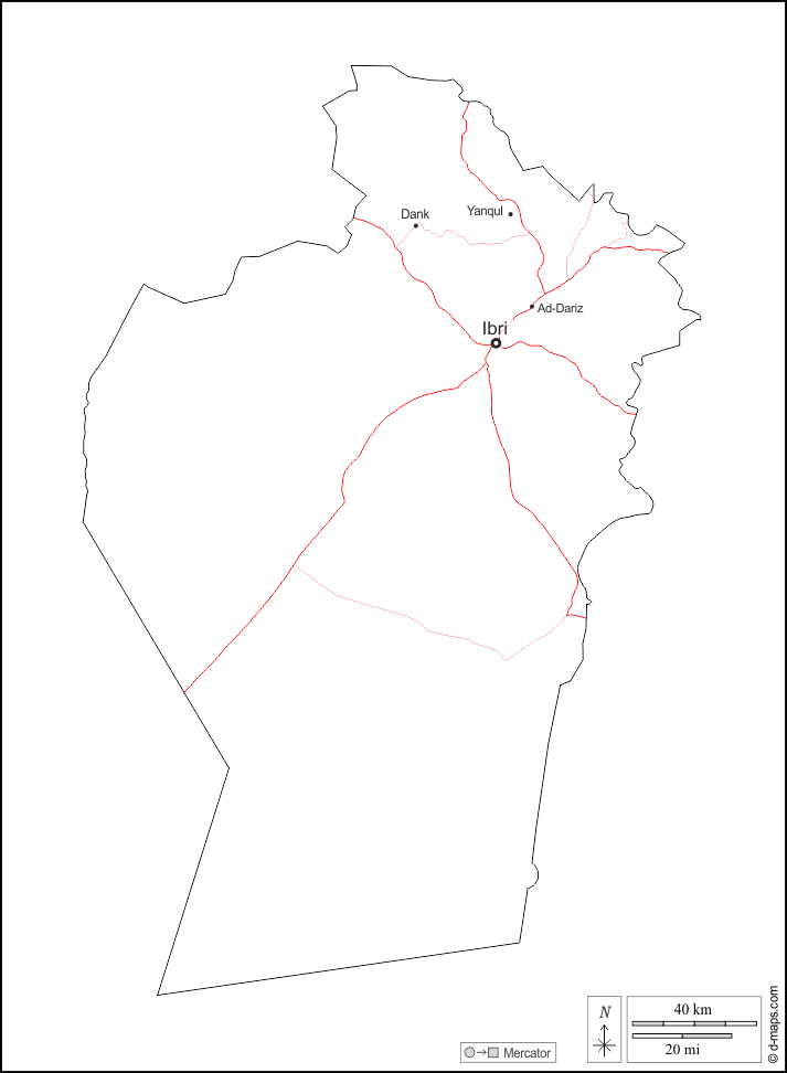 d-maps > Oman > Gouvernorat d'Ad Dhahirah > contours, principales villes, routes, noms, blanc