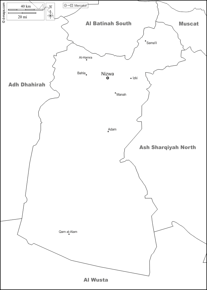 d-maps > Oman > Gouvernorat d'Ad-Dākhilīyah > frontières, principales villes, noms, blanc