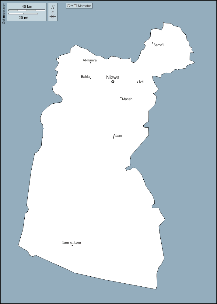 d-maps > Oman > Gouvernorat d'Ad-Dākhilīyah > contours, principales villes, noms