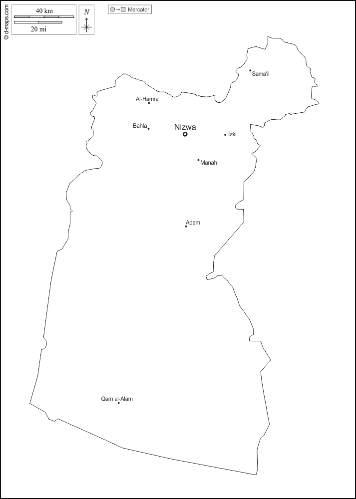 d-maps > Oman > Gouvernorat d'Ad-Dākhilīyah > contours, principales villes, noms, blanc