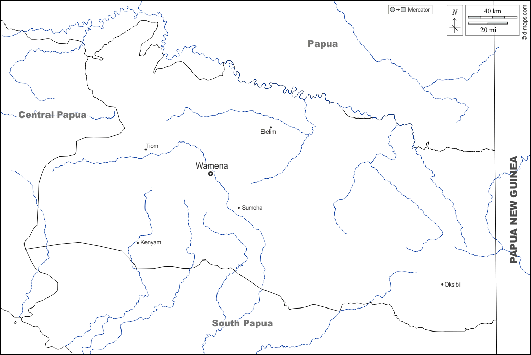 d-maps > Asie > Indonésie > Papouasie des hautes terres > frontières, hydrographie, principales villes, noms, blanc