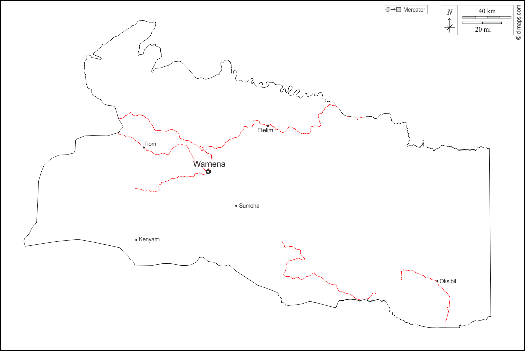 d-maps > Asie > Indonésie > Papouasie des hautes terres > contours, principales villes, routes, noms, blanc