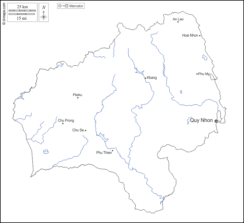 d-maps > Asie > Viêt Nam > Province de Gia Lai > contours, hydrographie, principales villes, noms, blanc