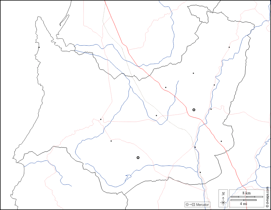 d-maps > Europe > Italie > Province du Medio Campidano > frontières, hydrographie, principales villes, routes, blanc