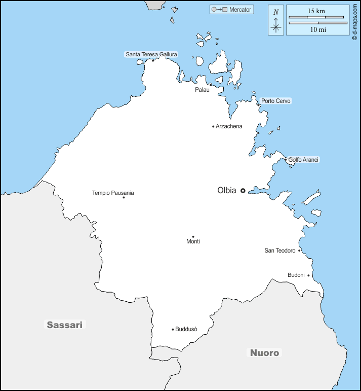 d-maps > Europe > Italie > Province de Gallura-Sardaigne Nord-Est > frontières, principales villes, noms