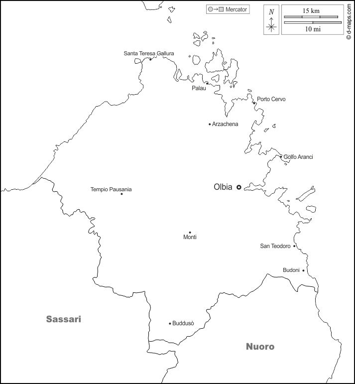 d-maps > Europe > Italie > Province de Gallura-Sardaigne Nord-Est > frontières, principales villes, noms, blanc