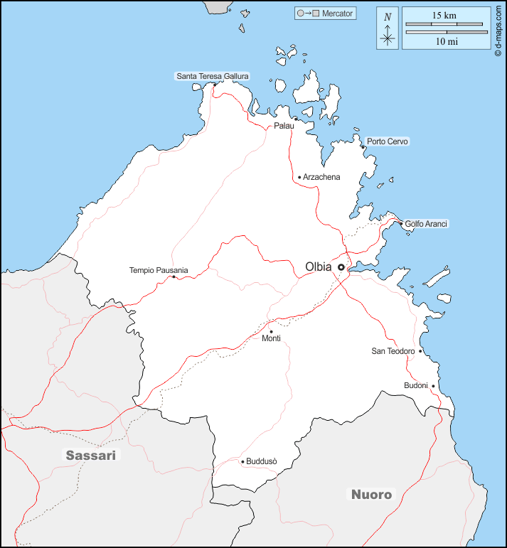 d-maps > Europe > Italie > Province de Gallura-Sardaigne Nord-Est > frontières, principales villes, routes, noms