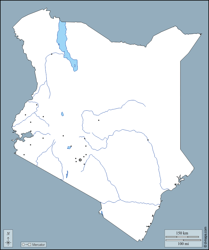 d-maps > Afrique > Kenya > Kenya > contours, hydrographie, principales villes