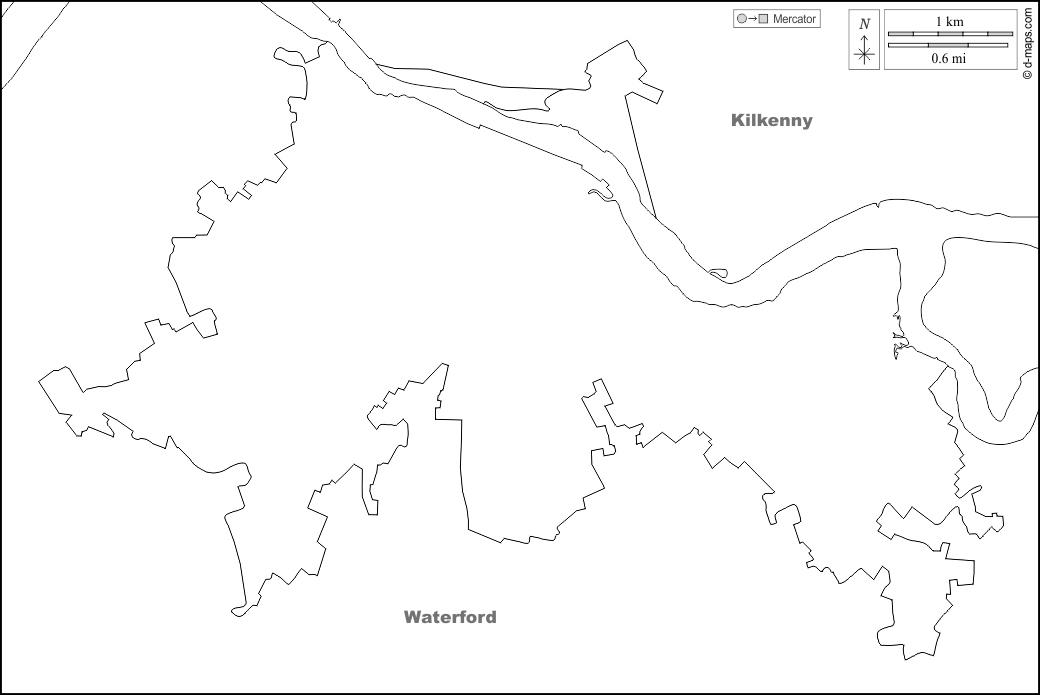 d-maps > यूरोप > आयरलैण्ड गणतंत्र > वाटरफोर्ड सिटी > सीमाओं, नाम, सफेद