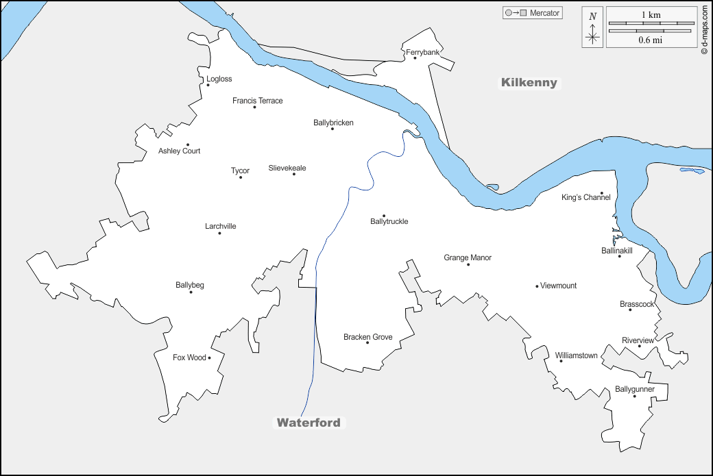 Ashley Court, Ballinakill, Ballybeg, Ballybricken, Ballygunner, Ballytruckle, Bracken Grove, Brasscock, Ferrybank, Fox Wood, Francis Terrace, Grange Manor, King’s Channel, Larchville, Logloss, Riverview, Slievekeale, Tycor, Viewmount, Williamstown.
