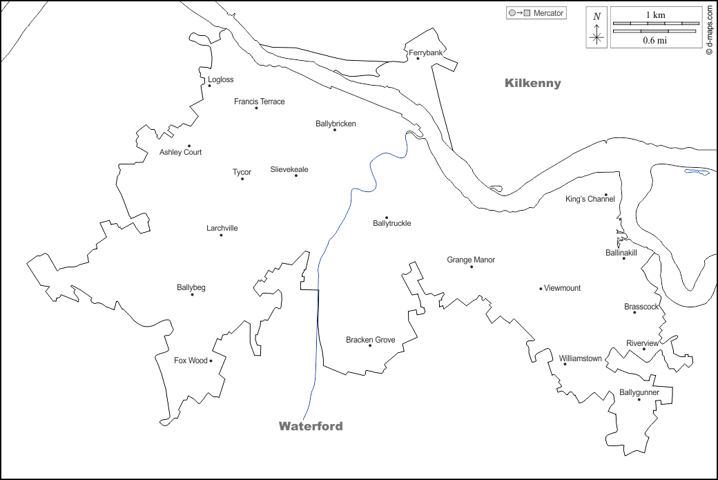d-maps > यूरोप > आयरलैण्ड गणतंत्र > वाटरफोर्ड सिटी > सीमाओं, जल-सर्वेक्षण, पड़ोस, नाम, सफेद