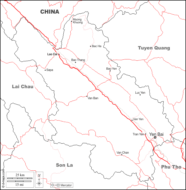 d-maps > एशिया > वियतनाम > लाओ काई प्रांत > सीमाओं, मुख्य शहरों, सड़कों, नाम, सफेद