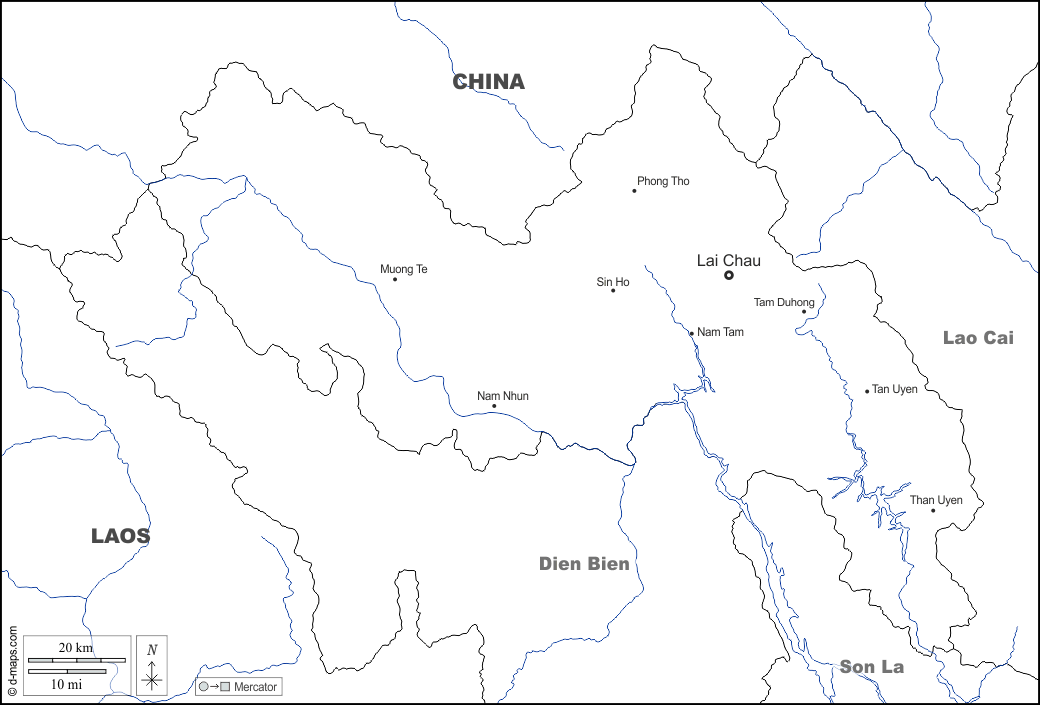 d-maps > एशिया > वियतनाम > लाई चाउ प्रांत > सीमाओं, जल-सर्वेक्षण, मुख्य शहरों, नाम, सफेद