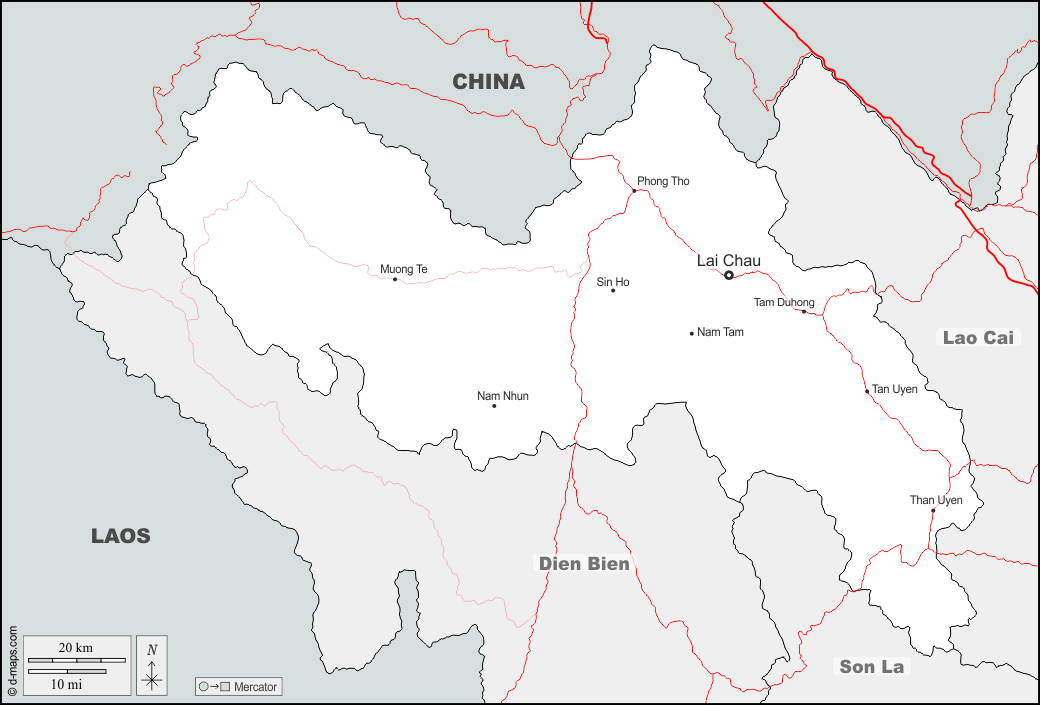 d-maps > एशिया > वियतनाम > लाई चाउ प्रांत > सीमाओं, मुख्य शहरों, सड़कों, नाम