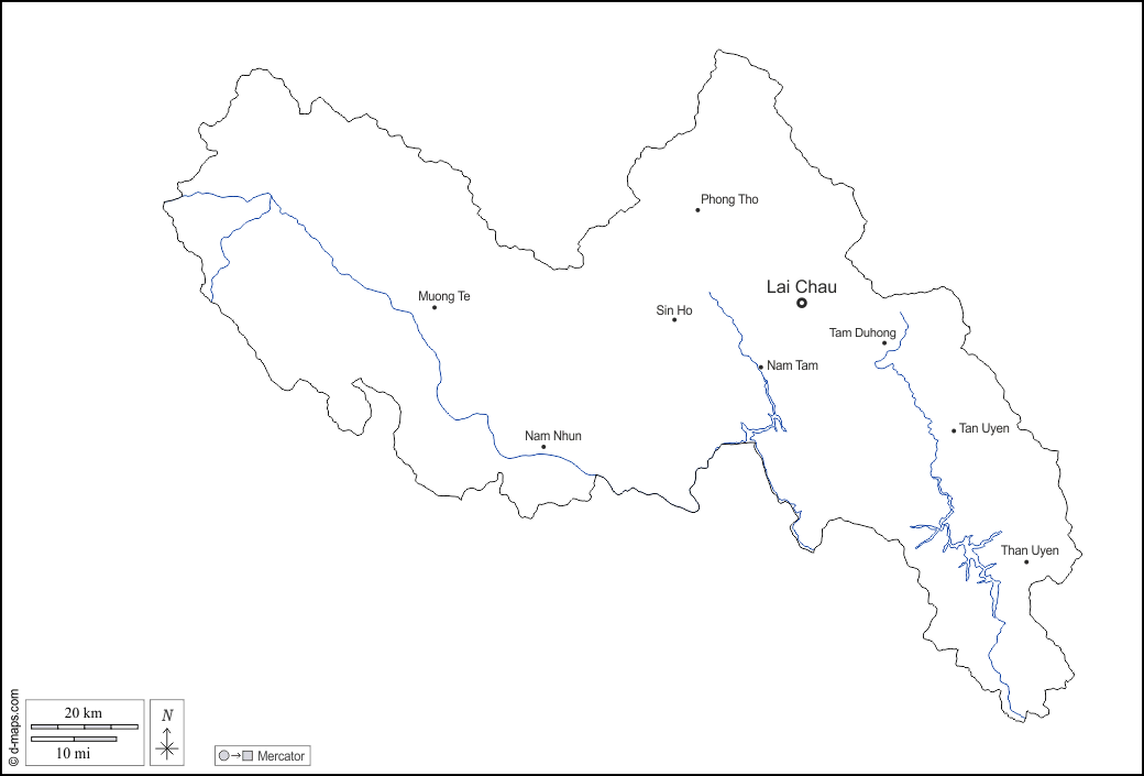 d-maps > एशिया > वियतनाम > लाई चाउ प्रांत > बाह्यरेखा, जल-सर्वेक्षण, मुख्य शहरों, नाम, सफेद