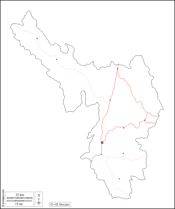 d-maps > एशिया > वियतनाम > डिएन बिएन प्रांत > बाह्यरेखा, मुख्य शहरों, सड़कों, सफेद