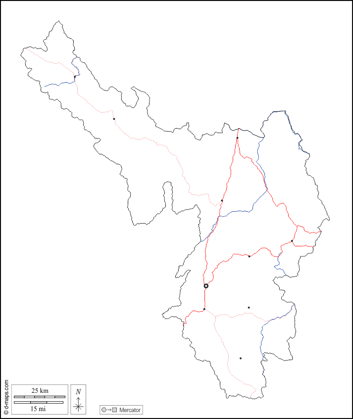 d-maps > एशिया > वियतनाम > डिएन बिएन प्रांत > बाह्यरेखा, जल-सर्वेक्षण, मुख्य शहरों, सड़कों, सफेद
