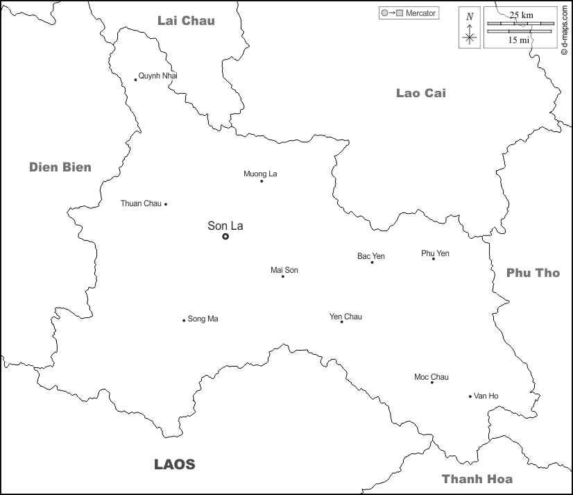 d-maps > एशिया > वियतनाम > सौन ला प्रान्त > सीमाओं, मुख्य शहरों, नाम, सफेद