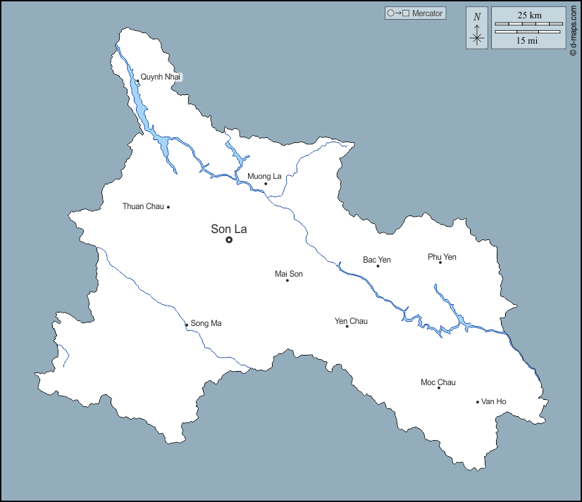d-maps > एशिया > वियतनाम > सौन ला प्रान्त > बाह्यरेखा, जल-सर्वेक्षण, मुख्य शहरों, नाम