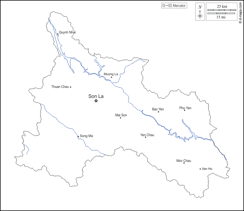 d-maps > एशिया > वियतनाम > सौन ला प्रान्त > बाह्यरेखा, जल-सर्वेक्षण, मुख्य शहरों, नाम, सफेद