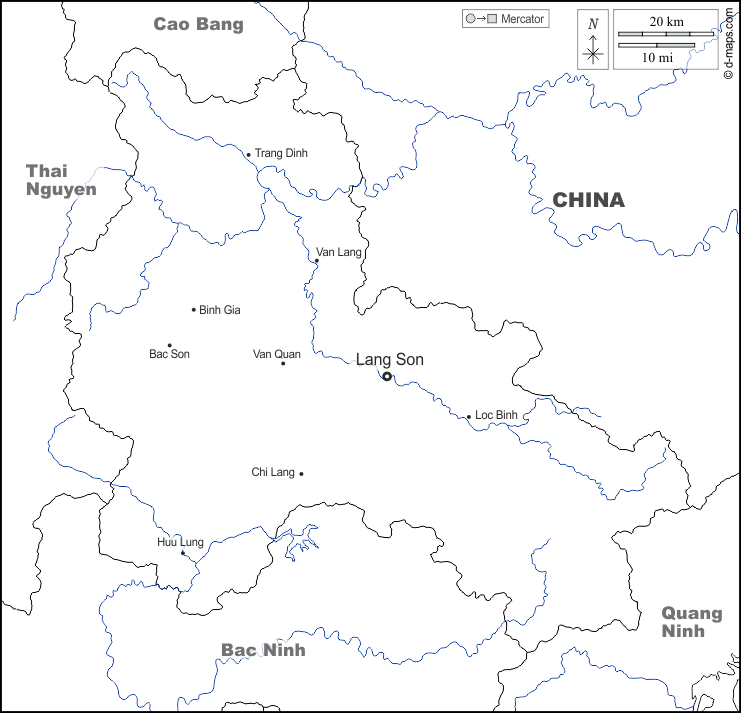 d-maps > एशिया > वियतनाम > लैंग सोन प्रान्त > सीमाओं, जल-सर्वेक्षण, मुख्य शहरों, नाम, सफेद