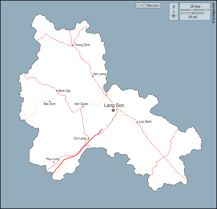 d-maps > एशिया > वियतनाम > लैंग सोन प्रान्त > बाह्यरेखा, मुख्य शहरों, सड़कों, नाम