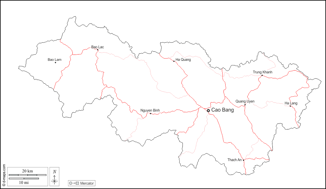 d-maps > एशिया > वियतनाम > कैओ बांग प्रान्त > बाह्यरेखा, मुख्य शहरों, सड़कों, नाम, सफेद