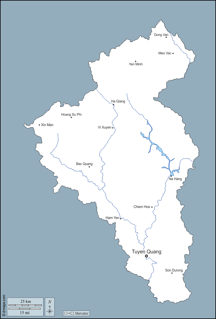 d-maps > एशिया > वियतनाम > तुयेन क्वांग प्रांत > बाह्यरेखा, जल-सर्वेक्षण, मुख्य शहरों, नाम