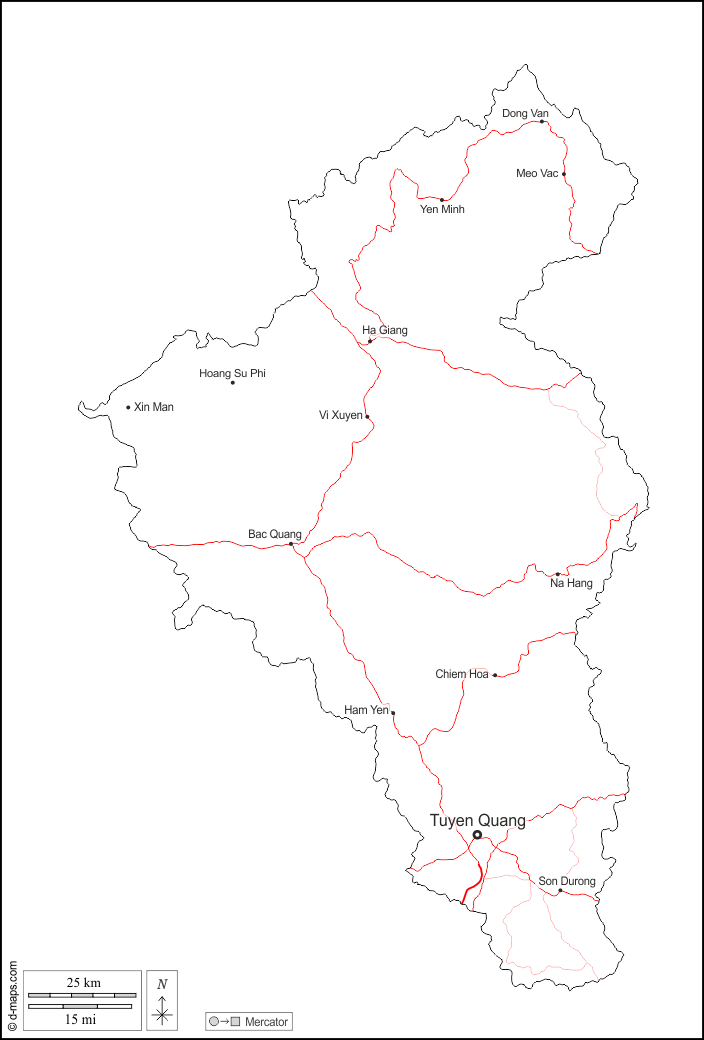 d-maps > एशिया > वियतनाम > तुयेन क्वांग प्रांत > बाह्यरेखा, मुख्य शहरों, सड़कों, नाम, सफेद
