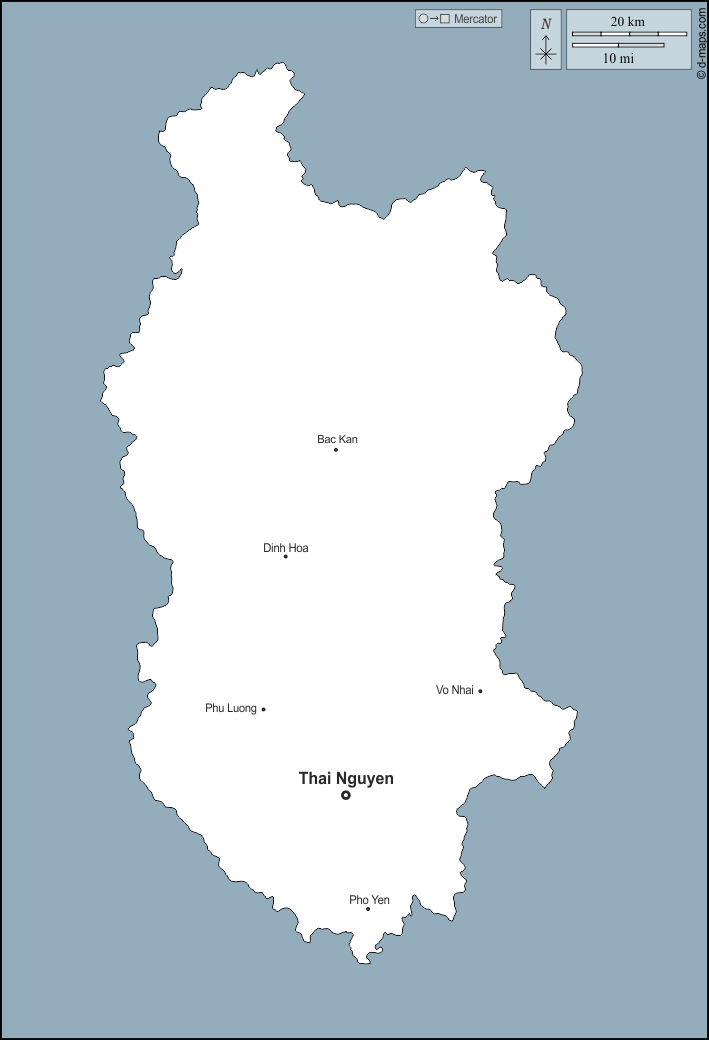 d-maps > एशिया > वियतनाम > थाई न्गुयेन प्रांत > बाह्यरेखा, मुख्य शहरों, नाम