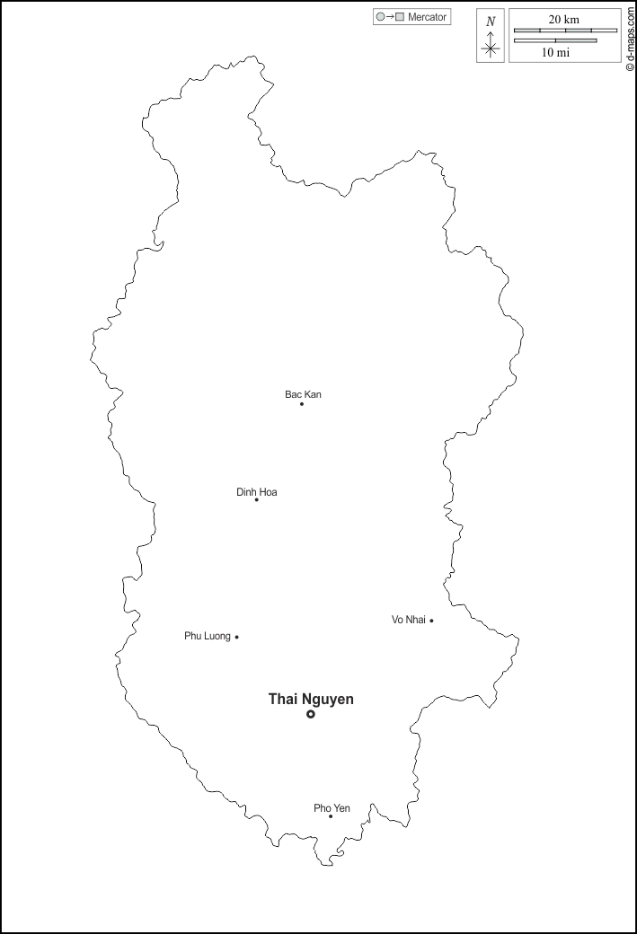 d-maps > एशिया > वियतनाम > थाई न्गुयेन प्रांत > बाह्यरेखा, मुख्य शहरों, नाम, सफेद