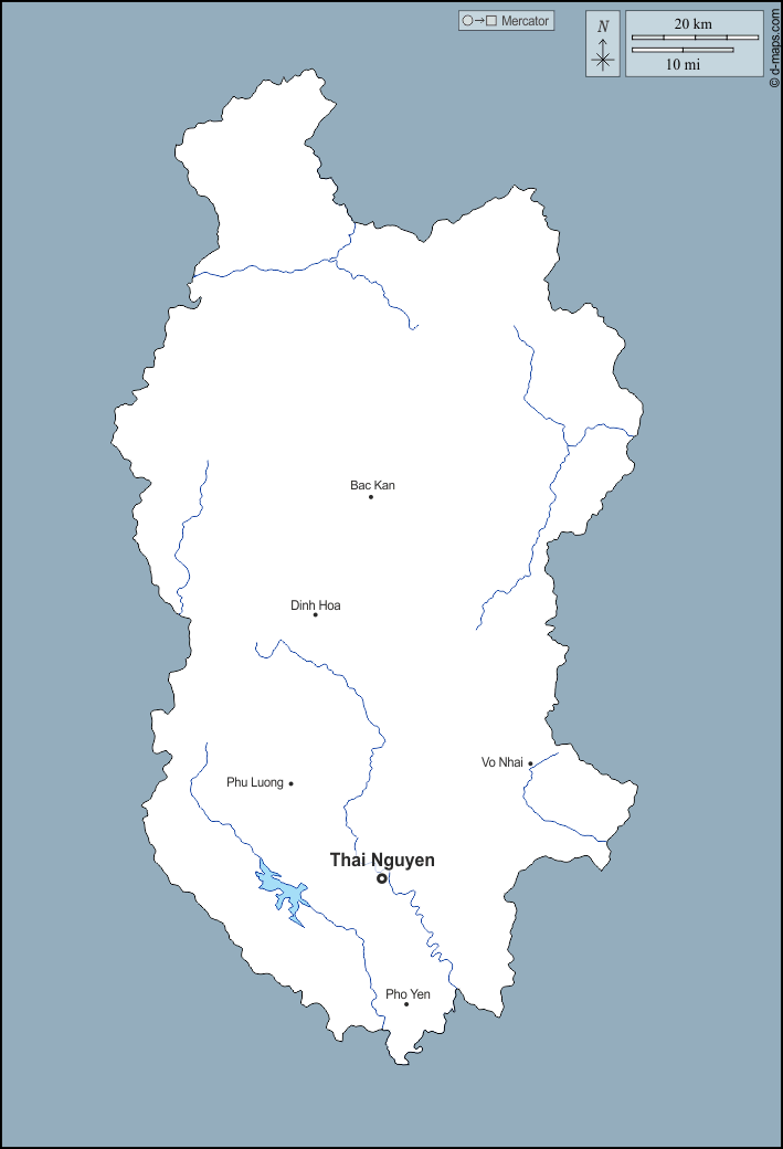 d-maps > एशिया > वियतनाम > थाई न्गुयेन प्रांत > बाह्यरेखा, जल-सर्वेक्षण, मुख्य शहरों, नाम