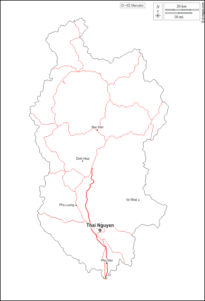 d-maps > एशिया > वियतनाम > थाई न्गुयेन प्रांत > बाह्यरेखा, मुख्य शहरों, सड़कों, नाम, सफेद