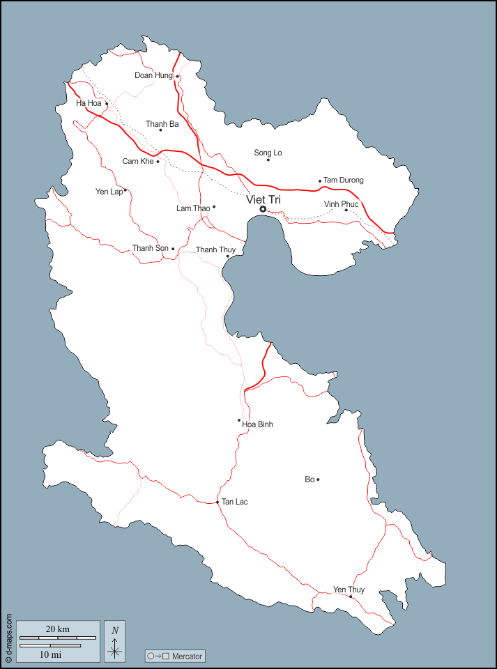 d-maps > एशिया > वियतनाम > फू थो प्रांत > बाह्यरेखा, मुख्य शहरों, सड़कों, नाम