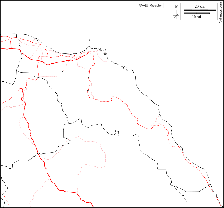 d-maps > ओमान > मस्कट गवर्नरेट > सीमाओं, मुख्य शहरों, सड़कों, सफेद