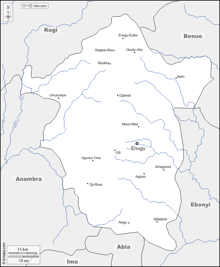 d-maps > Africa > Nigeria > Enugu > frontiere, idrografia, principali città, nomi