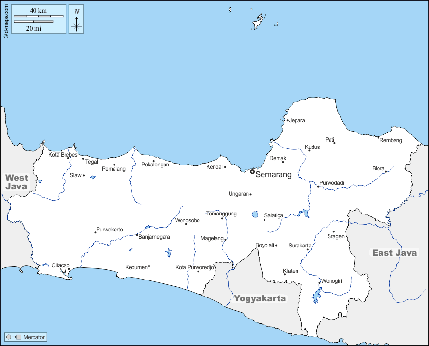 Asia > Indonesia > Giava Centrale > frontiere, idrografia, principali città, nomi