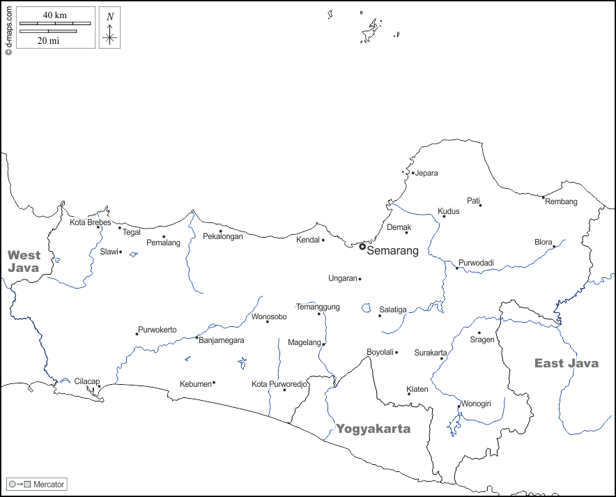 d-maps > Asia > Indonesia > Giava Centrale > frontiere, idrografia, principali città, nomi, bianco