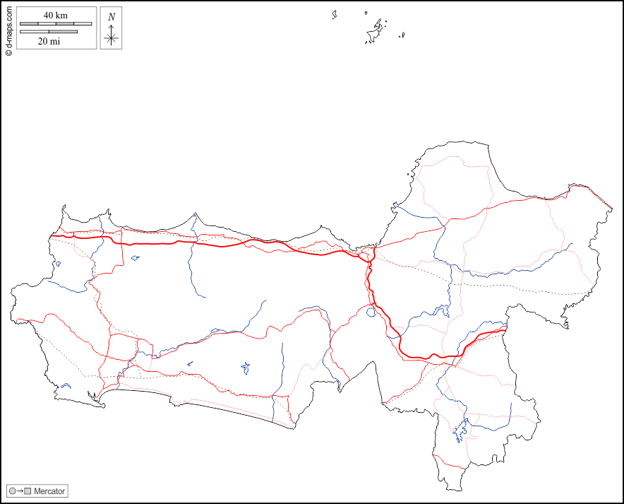 Asia > Indonesia > Giava Centrale > contorni, idrografia, strade, bianco