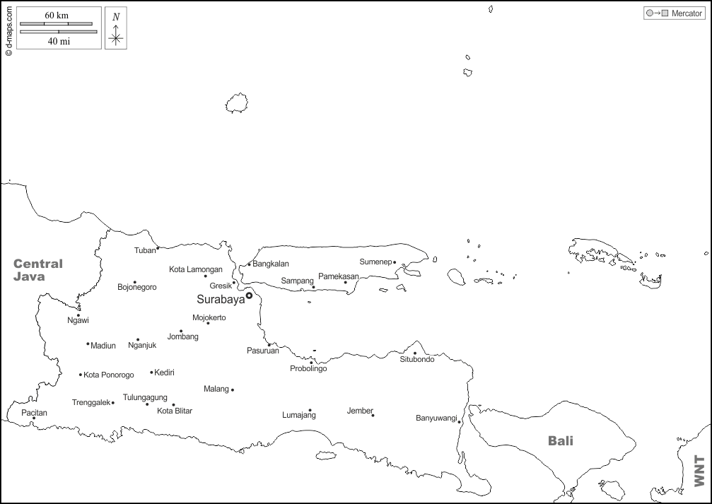Asia > Indonesia > Giava orientale > frontiere, principali città, nomi, bianco