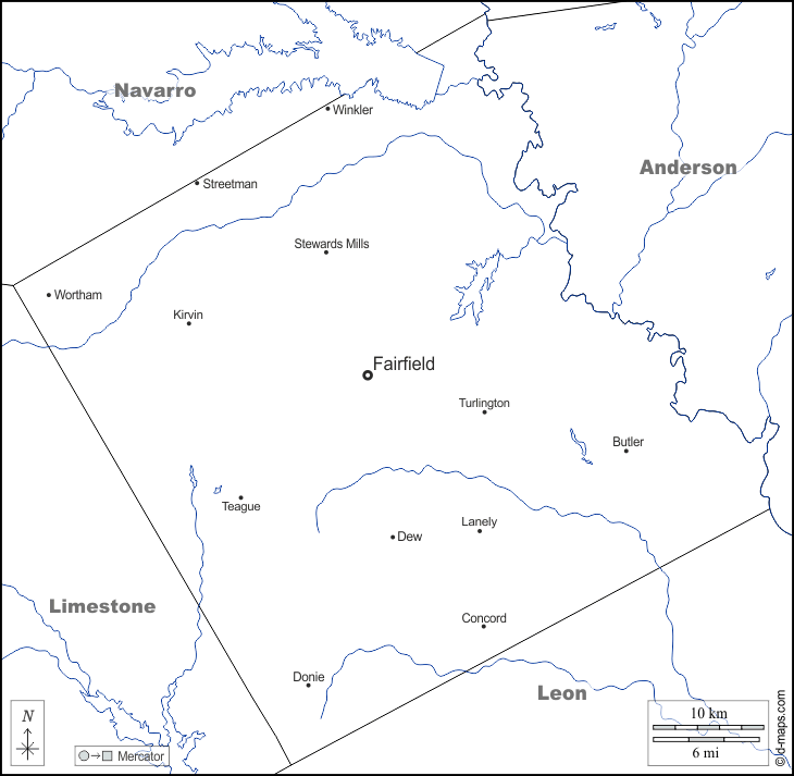 Stati Uniti d'America (USA) > Texas > Contea di Freestone > frontiere, idrografia, principali città, nomi, bianco
