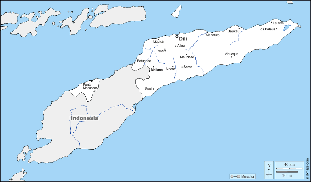 Asia > Timor Est > frontiere, idrografia, principali città, nomi