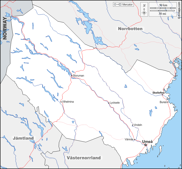d-maps > Europa > Svezia > Västerbotten > frontiere, idrografia, principali città, strade, nomi