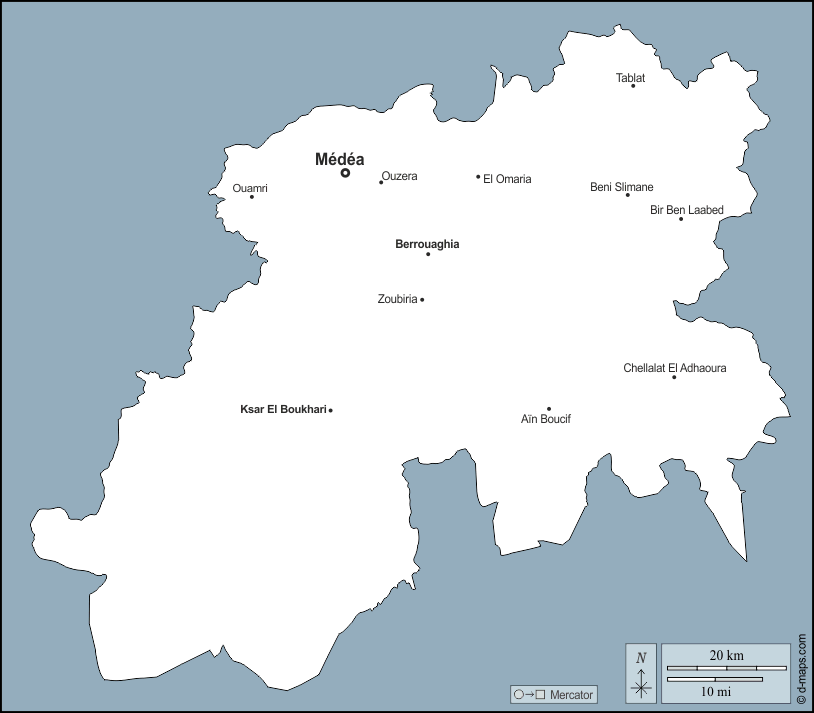 d-maps > Africa > Algeria > Provincia di Médéa > contorni, principali città, nomi