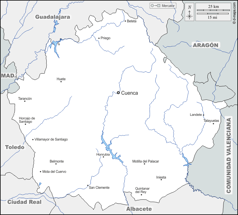 Europa > Spagna > Cuenca > frontiere, idrografia, principali città, nomi